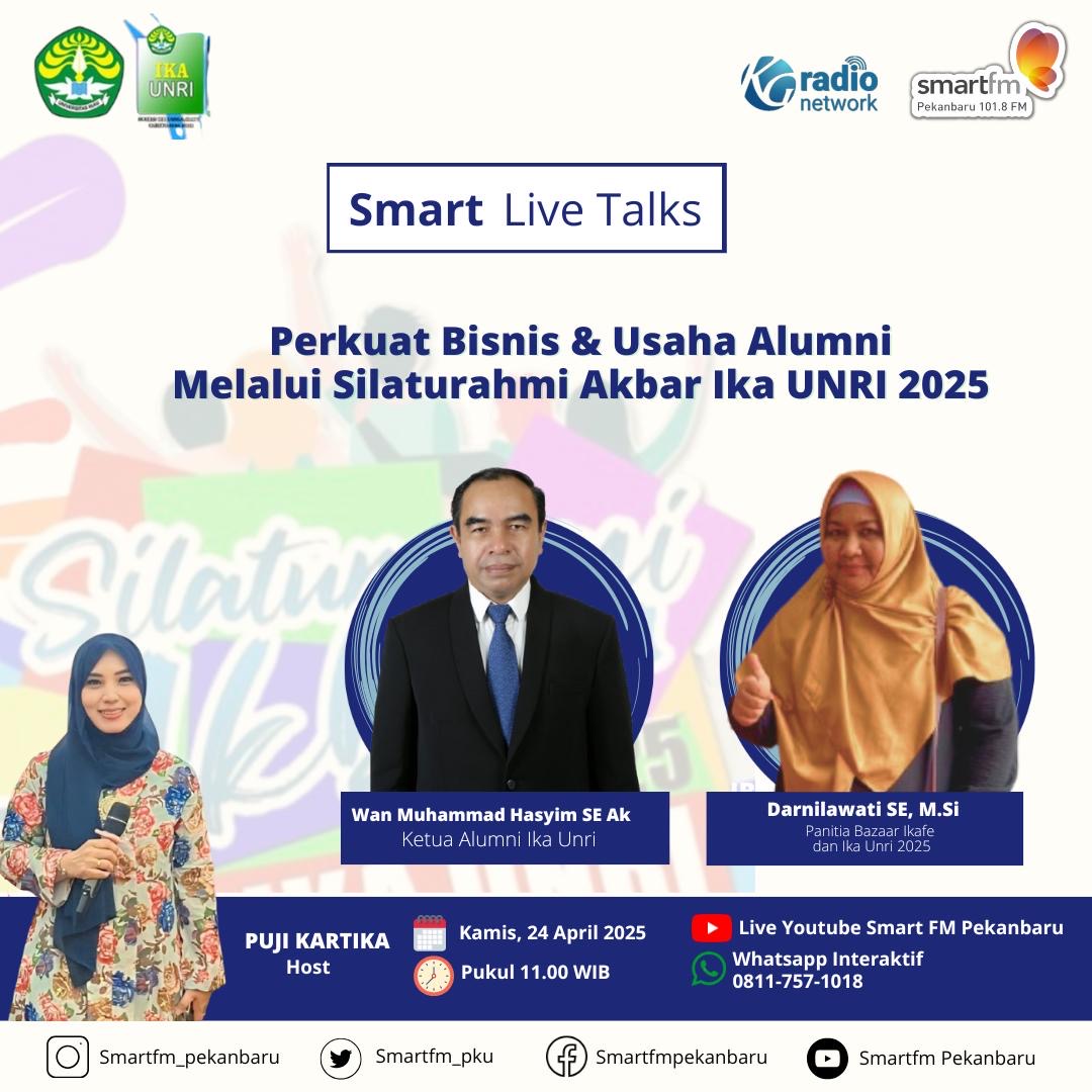 Dipandu oleh host Puji Kartika, acara ini akan disiarkan secara langsung melalui kanal YouTube Smart FM Pekanbaru serta dapat diikuti secara interaktif melalui WhatsApp di nomor 0811-757-1018.